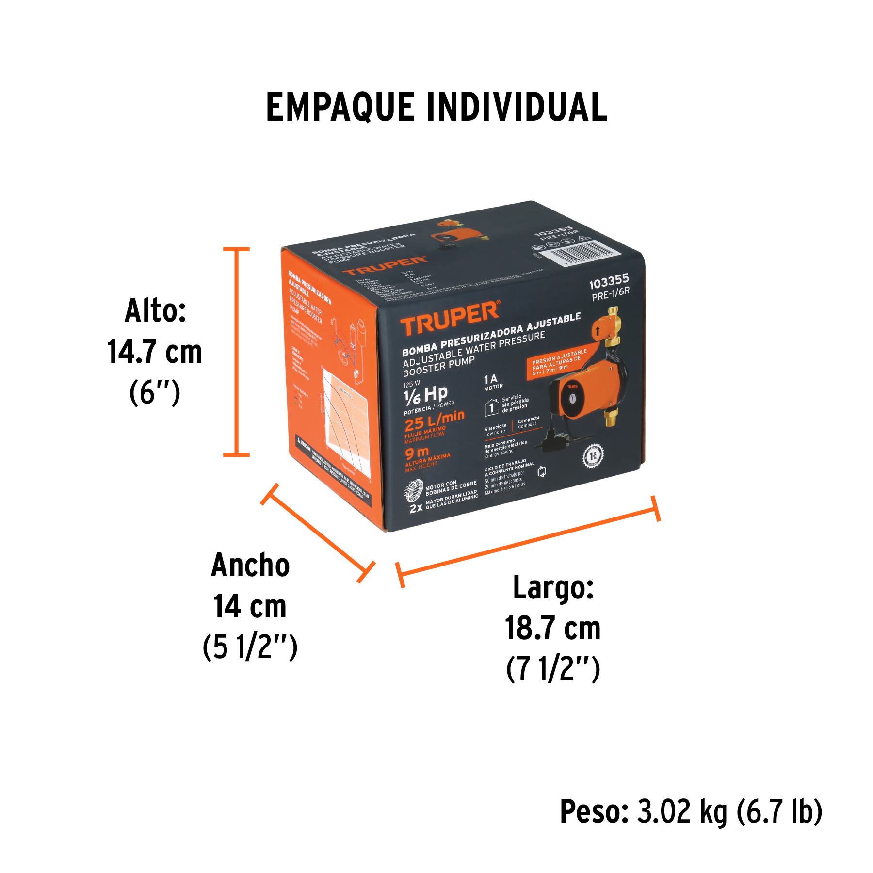 Bomba presurizadora 1/6 HP, con sensor regulable, TRUPER