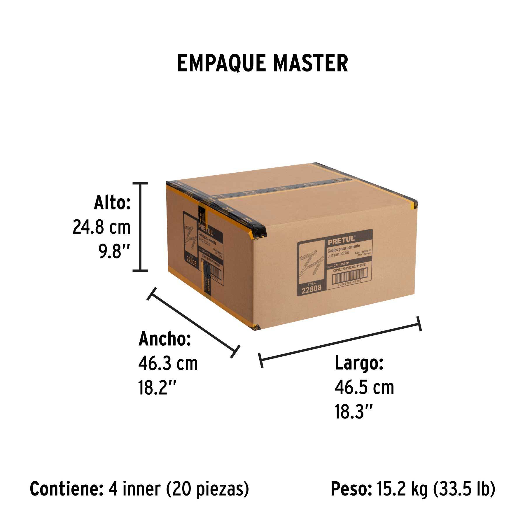 Cables pasa corriente 2.5m, 125 A, 10 AWG, con funda, Pretul