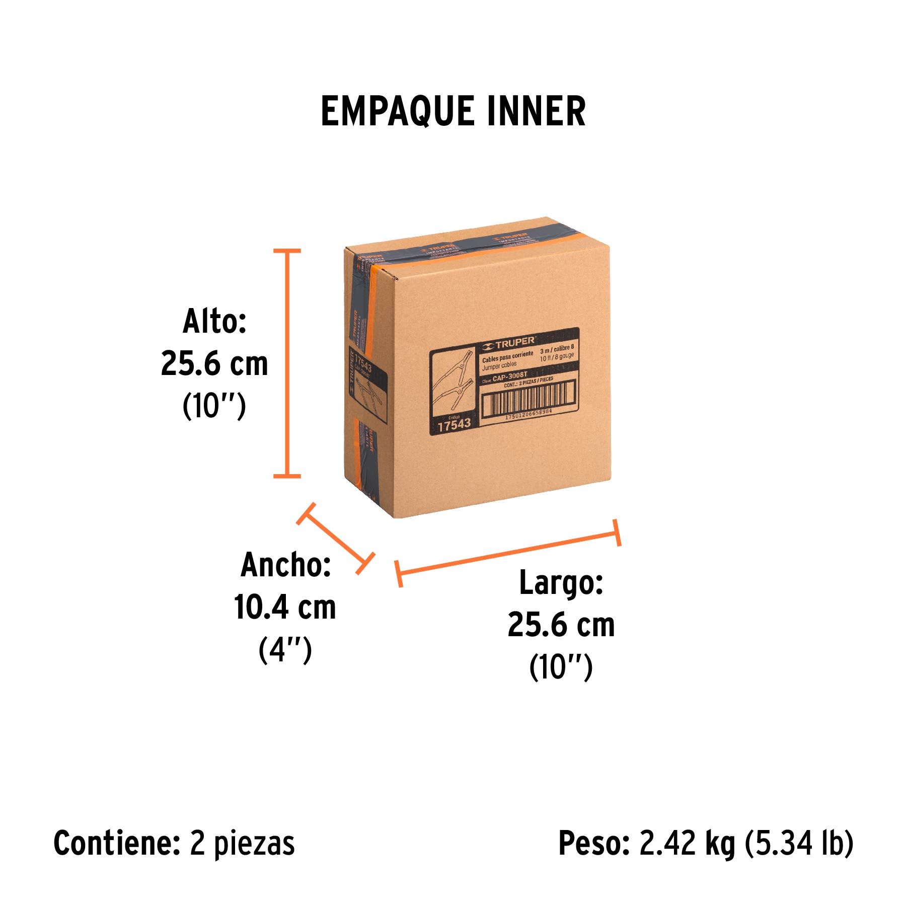 Cables pasa corriente 3 m, 225 A, 8 AWG, con funda, Truper