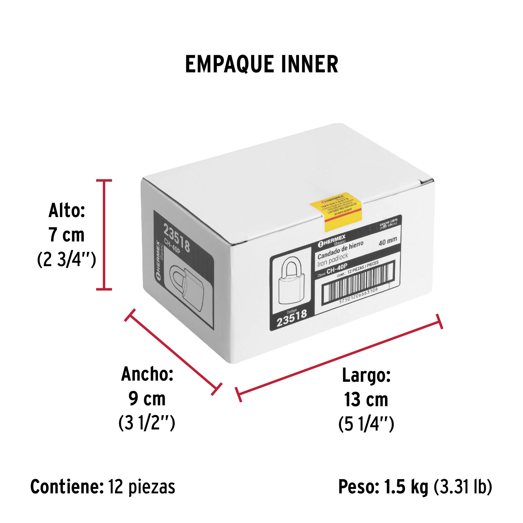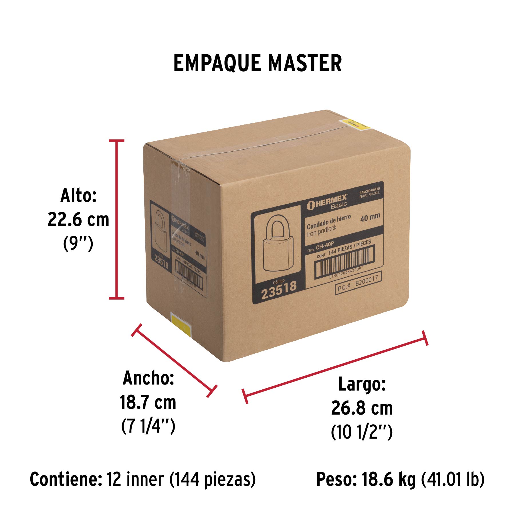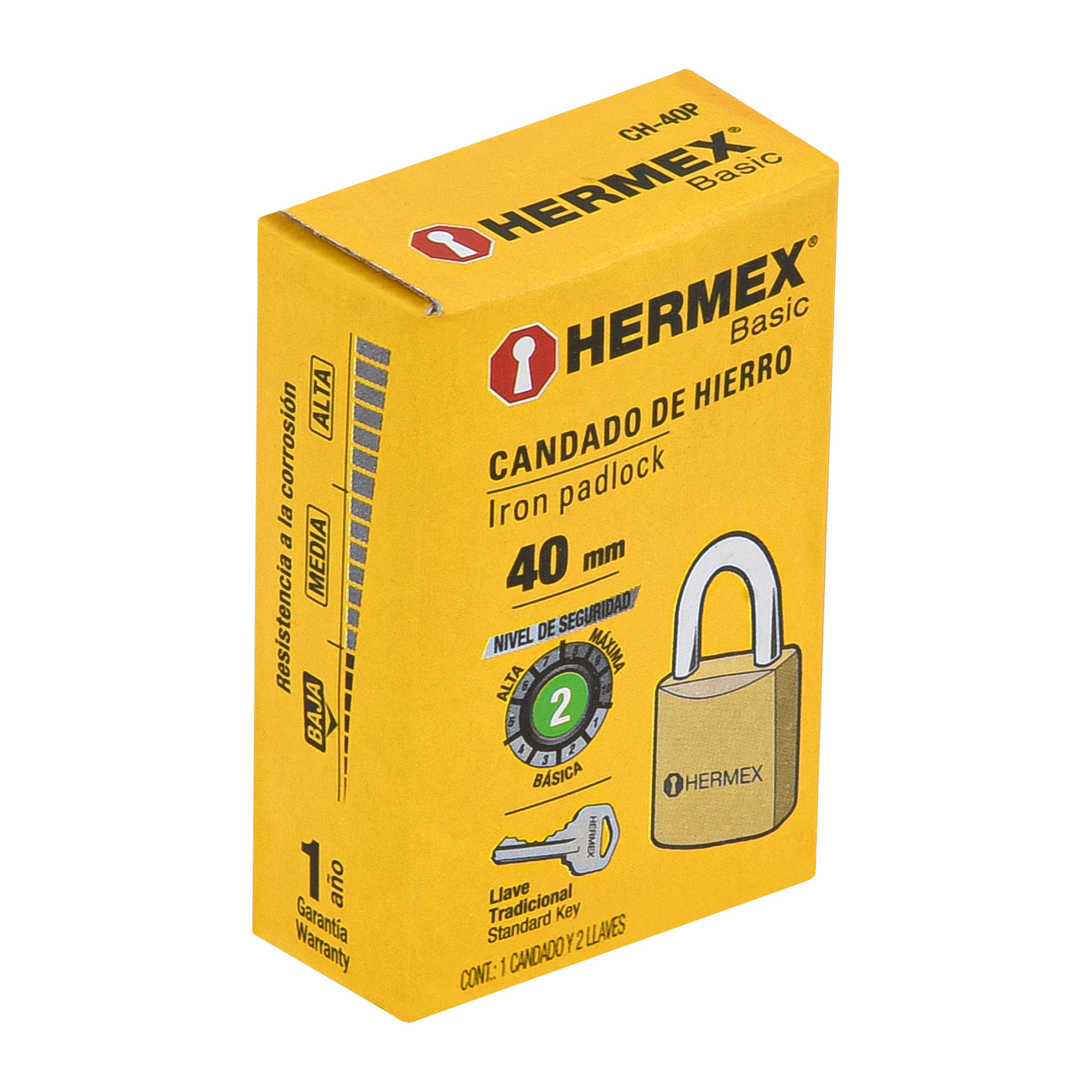 Candado de hierro color latón 40 mm, corto, caja, BASIC
