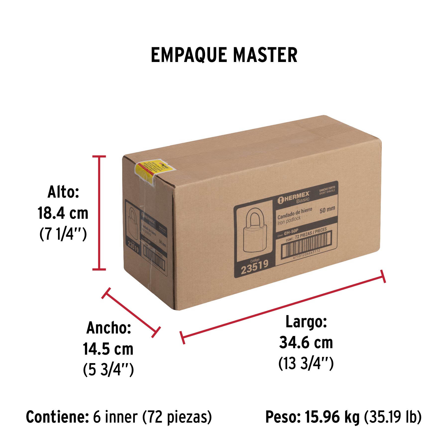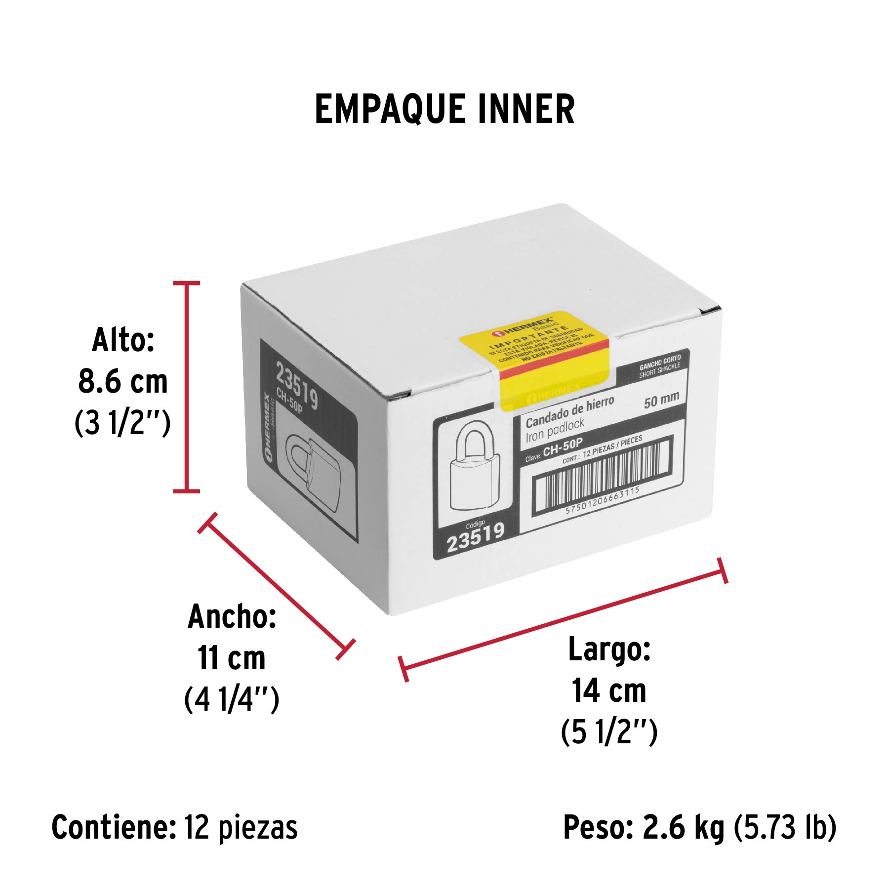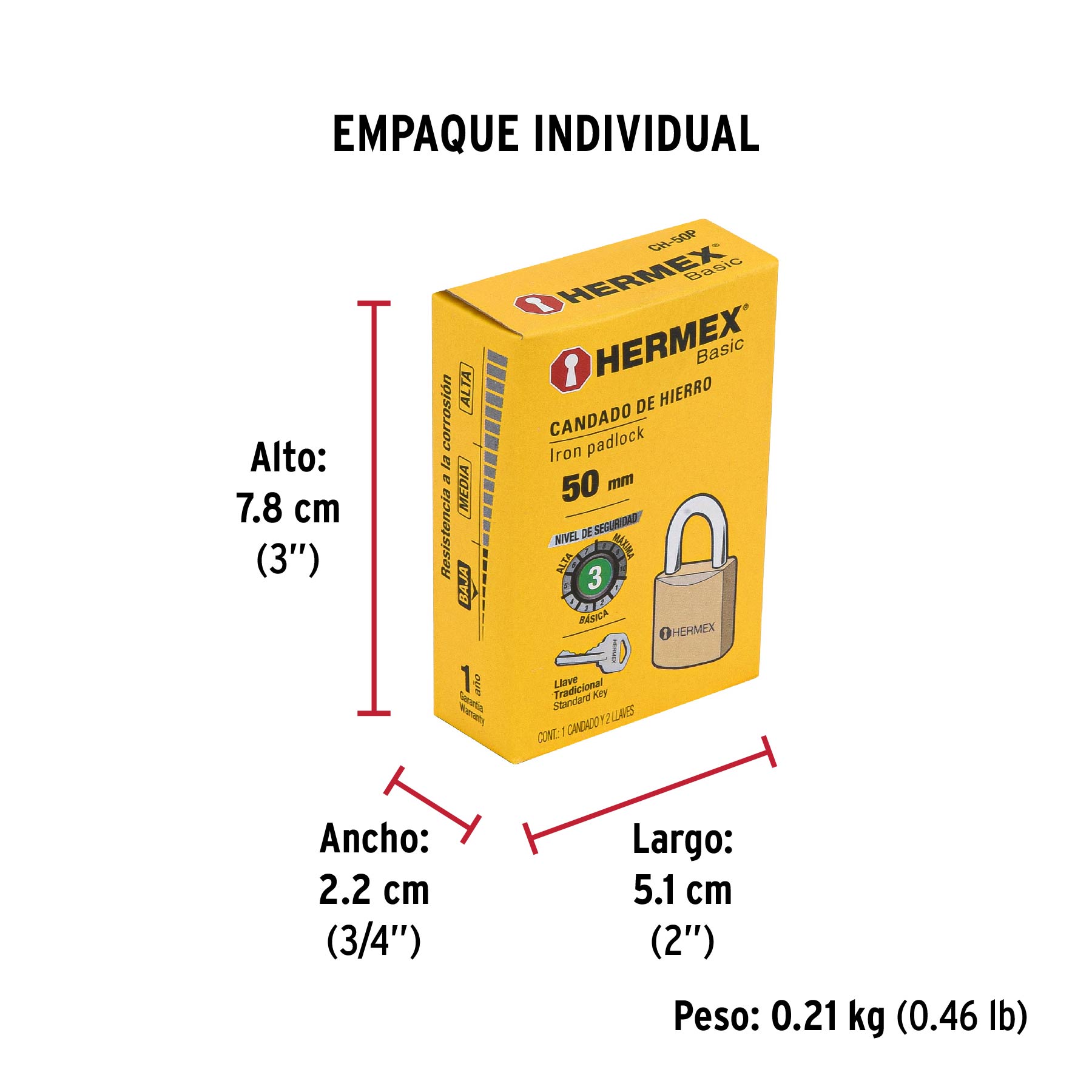 Candado de hierro color latón 50 mm, corto, caja, BASIC
