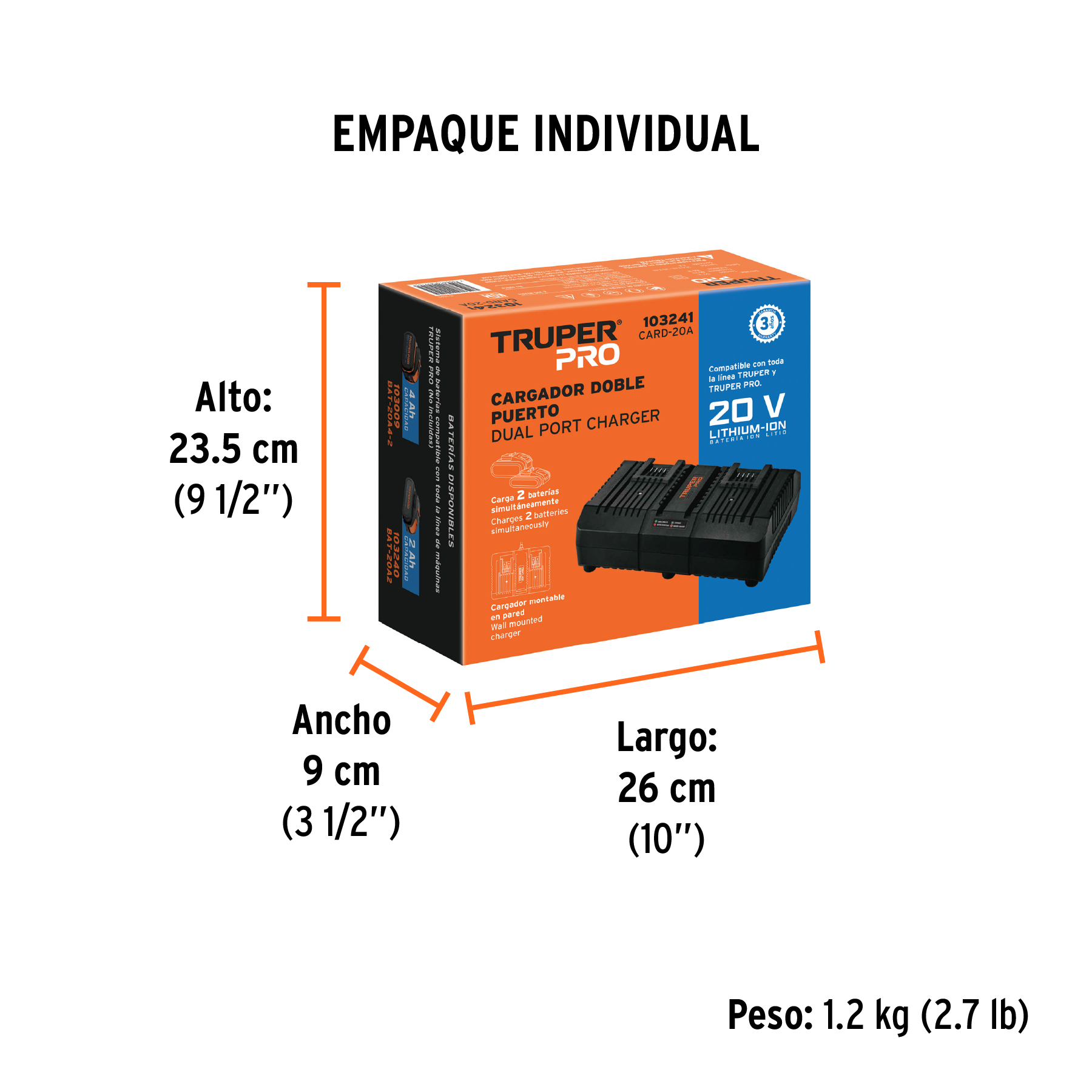 - Para baterías (20 V) modelos BAT-20A y BAT-20A4 marca TRUPER PRO