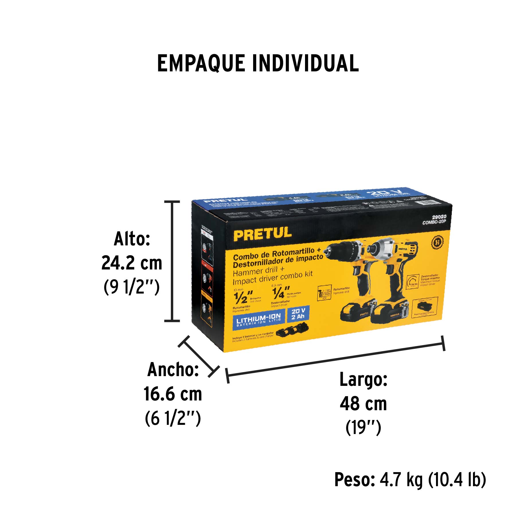 Sé el primero en dejar tu reseña para “Combo rotomartillo/destornillador impacto, 20V, PRETUL”