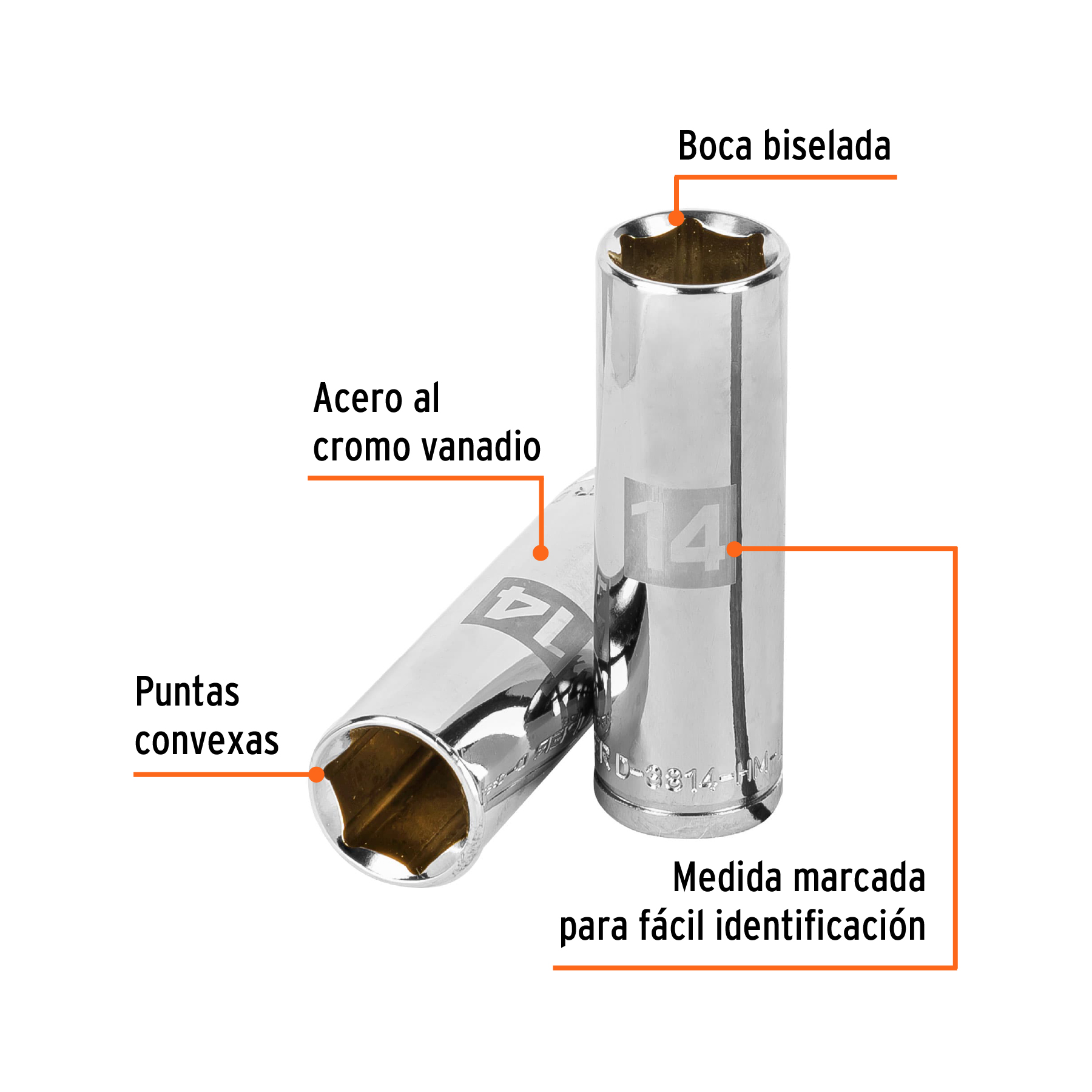 Dado largo de 14 mm, 6 puntas, cuadro 3/8″, Truper