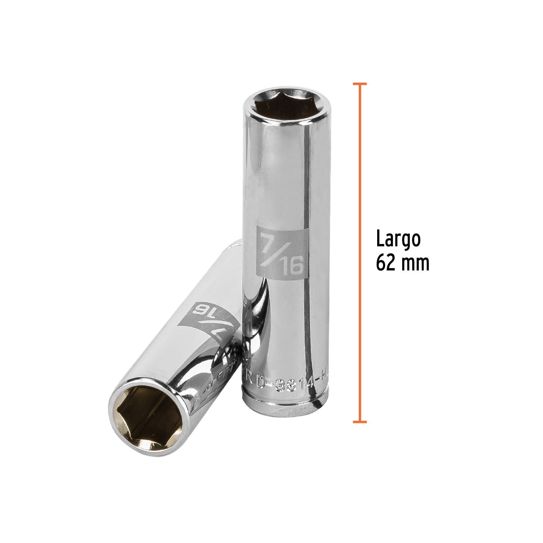 Dado largo de 7/16″, 6 puntas, cuadro 3/8″, Truper