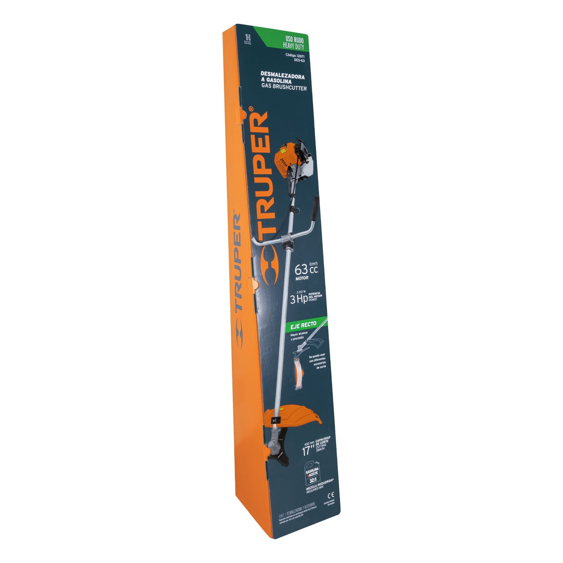 Guadaña a gasolina 63 cc mango «bici», 17″ corte