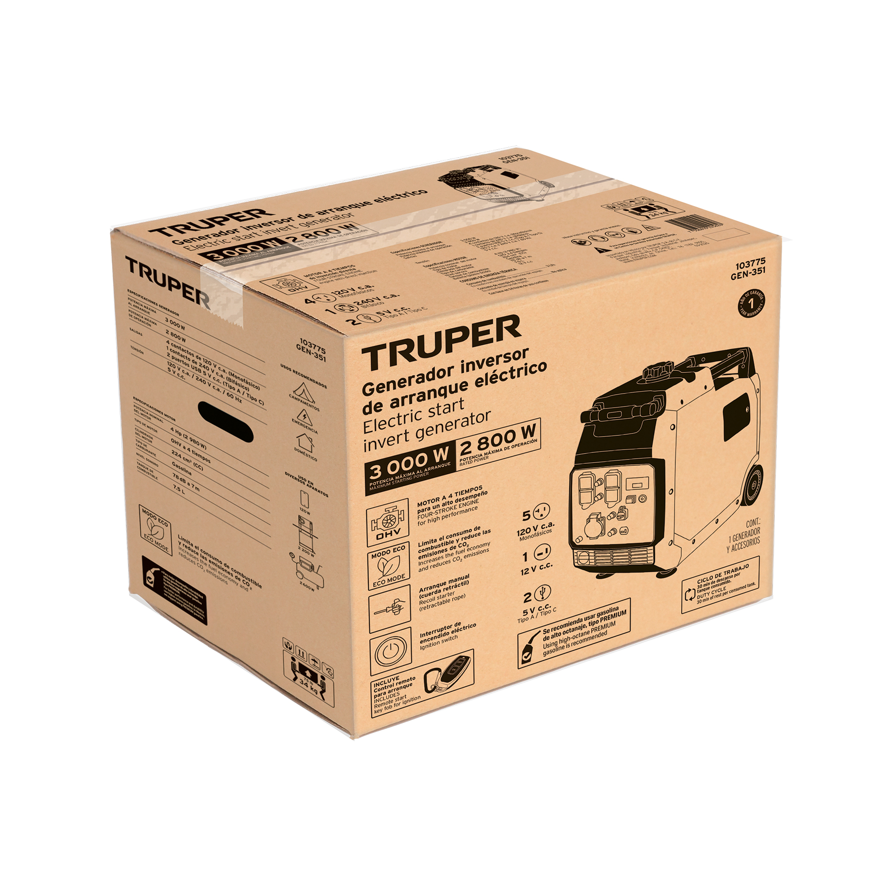 - Arranque eléctrico (batería incluida) con control remoto y manual (cuerda retráctil)