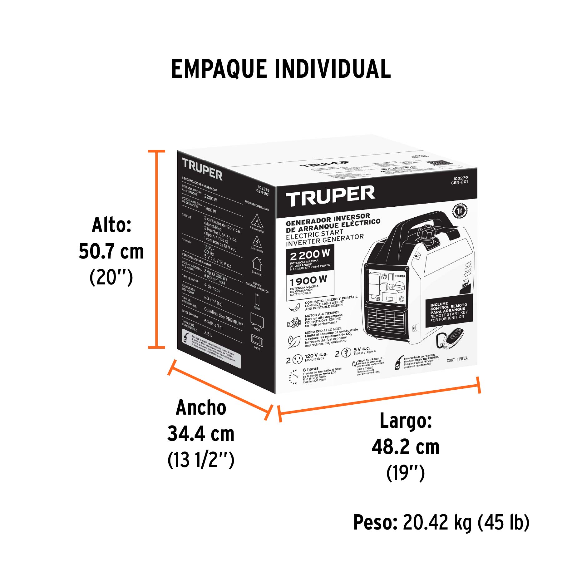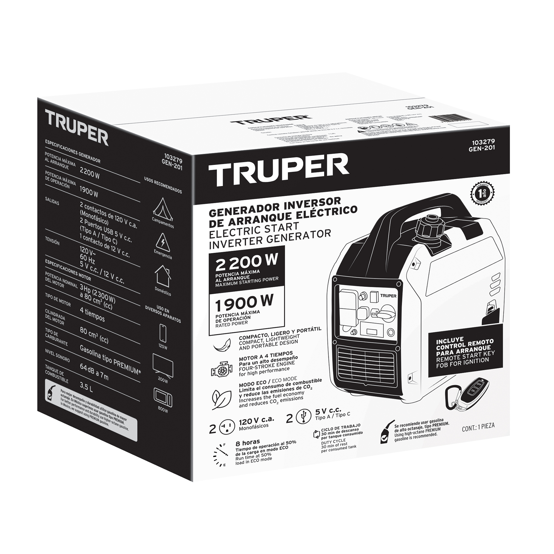 - Arranque eléctrico (batería incluida) con control remoto y manual (cuerda retráctil)