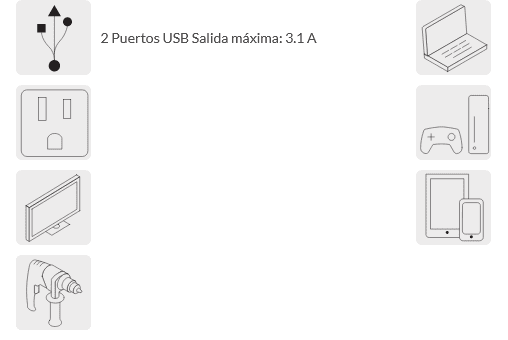 - Alimenta y recarga computadoras portátiles y equipo electrónico