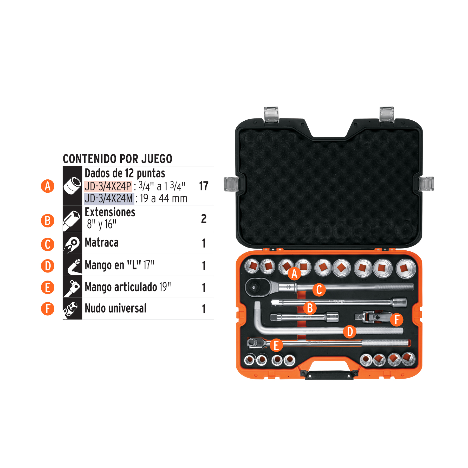 Juego de 23 herramientas cuadro 3/4″ std para mecánico