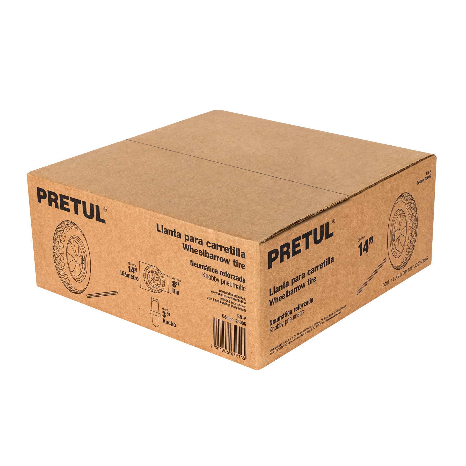Llanta completa neumática 14″, incluye eje y baleros, Pretul