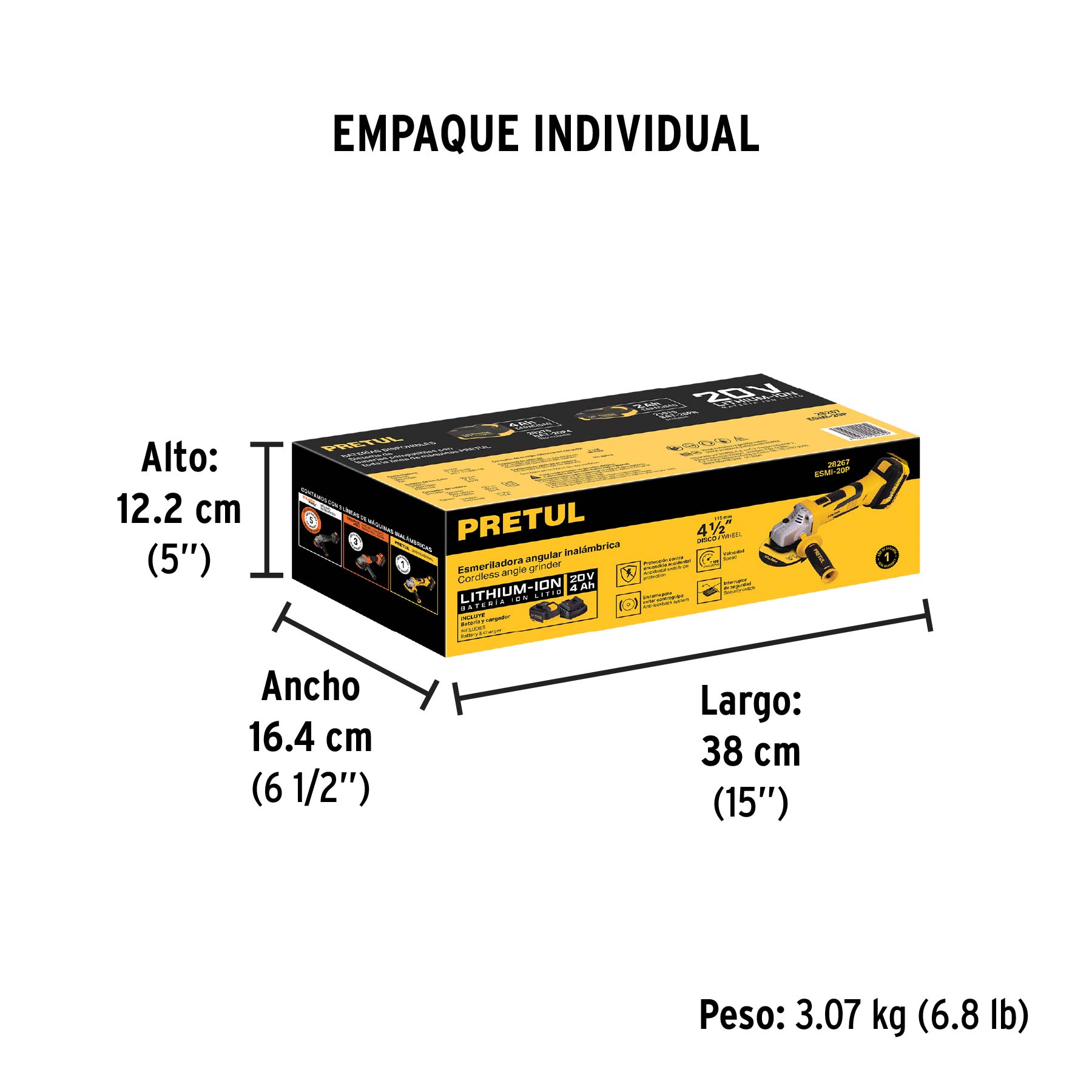 Pulidora inalambrica 4-1/2", 20V, 1 batería 4Ah, PRETUL