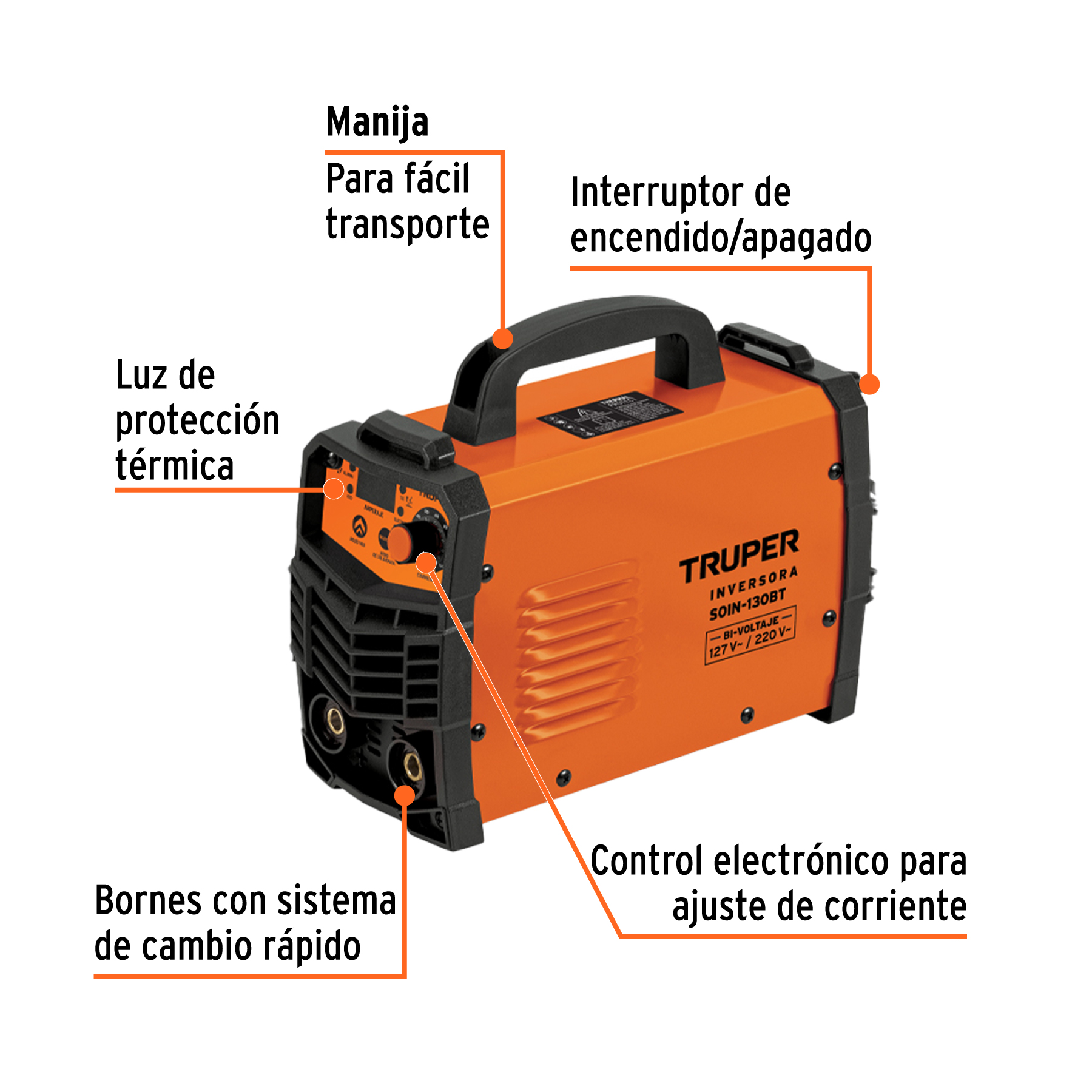 Soldadora inversora 130A, bi-voltaje 127/220V, TRUPER