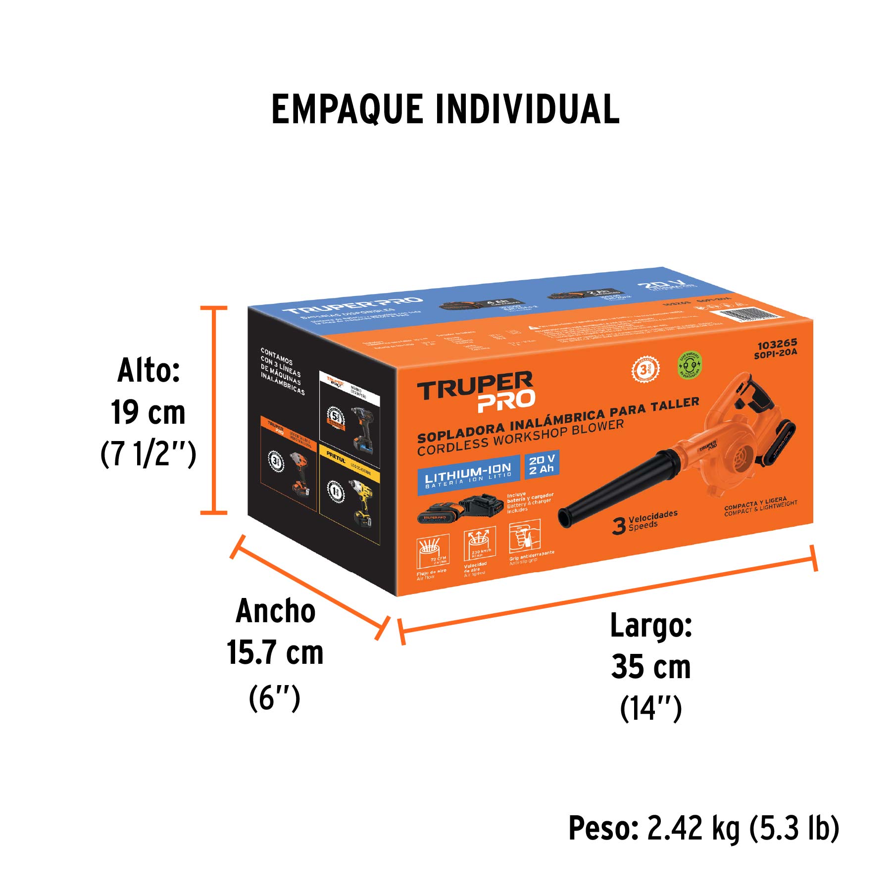 Sopladora para taller, 20V, 1 batería 2Ah, TRUPER PRO
